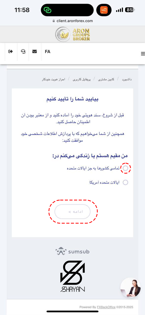۲. وارد گفته شده را تایید کنید و گزینه ادامه را بزنید.