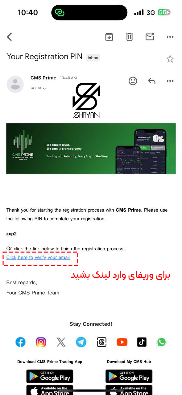۴. ایمیل ارسال شده را باز کنید!