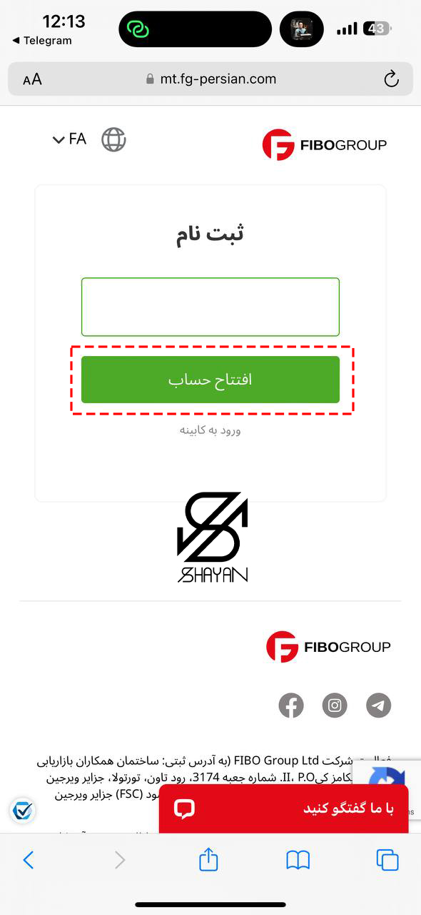 - ثبتنام در سایت رسمی فیبوگروپ: وارد سایت شده و با ارائه اطلاعات اولیه، فرم ثبتنام را تکمیل کنید.