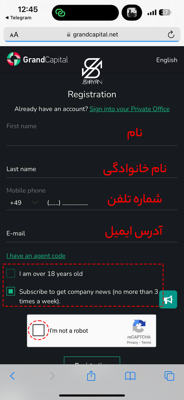 سایت این بروکر از زبان فارسی پشتیبانی نمی کند. برای ثبتنام در بروکر گرند کپیتال، مراحل زیر را دنبال کنید: