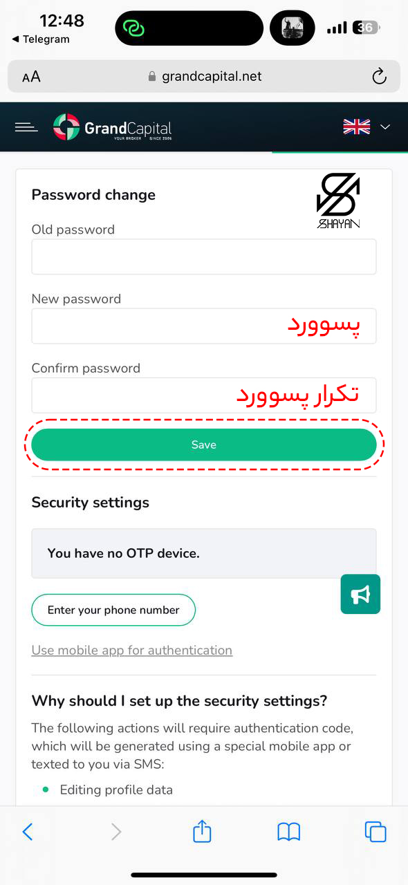 پس از پر کردن تمامی اطلاعات، بر روی دکمه “save” کلیک کنید.