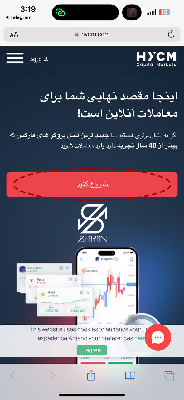 ابتدا وارد وبسایت رسمی بروکر HYCM به آدرس زیر شوید.