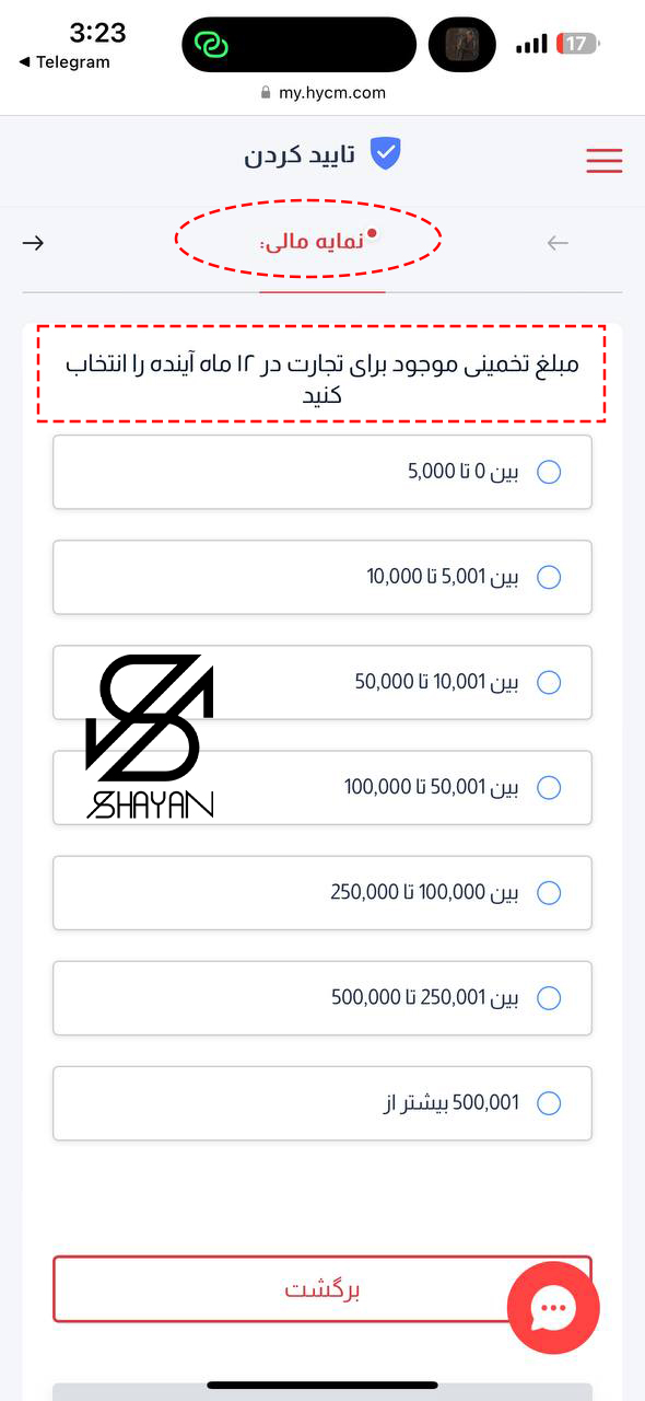 در این مرحله، باید اطلاعات مالی خود را تکمیل کنید: