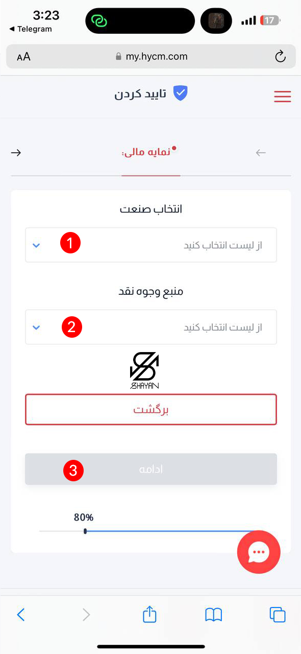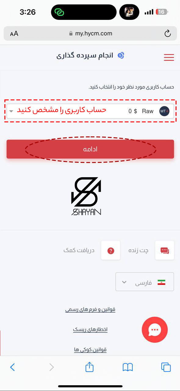 مرحله دوم: اگر حساب HYCM دارید، با اطلاعات ورود خود وارد شوید یا در برنامه ثبتنام کنید.