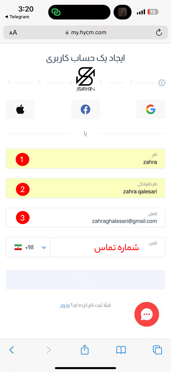 ۳. تمام مشخصات خواسته شده را وارد کنید.