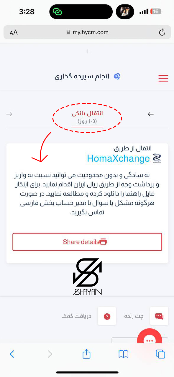 ۴. نوع انتقال را انتخاب کنید تا واریز وجه صورت گیرد.