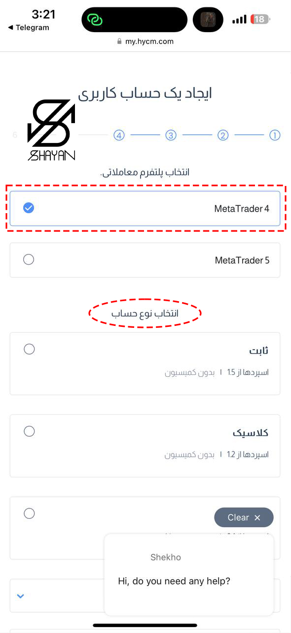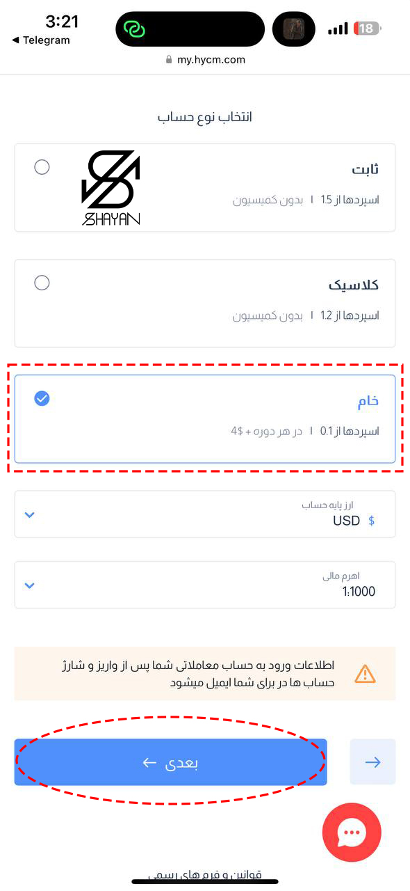 در این مرحله باید نوع حساب معاملاتی خود را انتخاب کنید. گزینههای مختلفی برای نوع حساب ارائه میشود که میتوانید براساس نیاز خود یکی از آنها را انتخاب کنید.