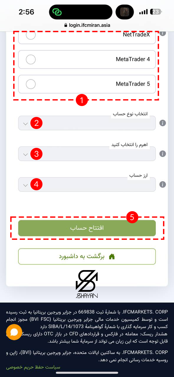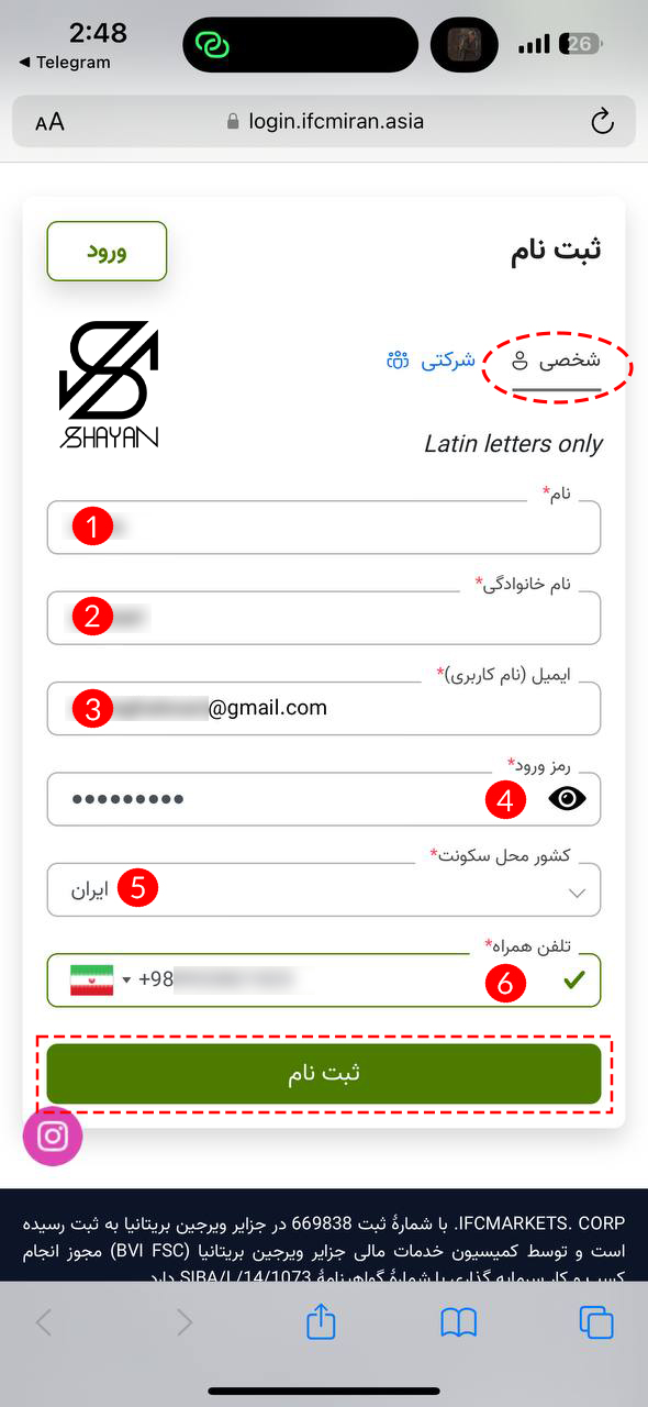 برای ثبت‌نام در بروکر آی اف سی مارکتس، مراحل زیر را به ترتیب انجام دهید: