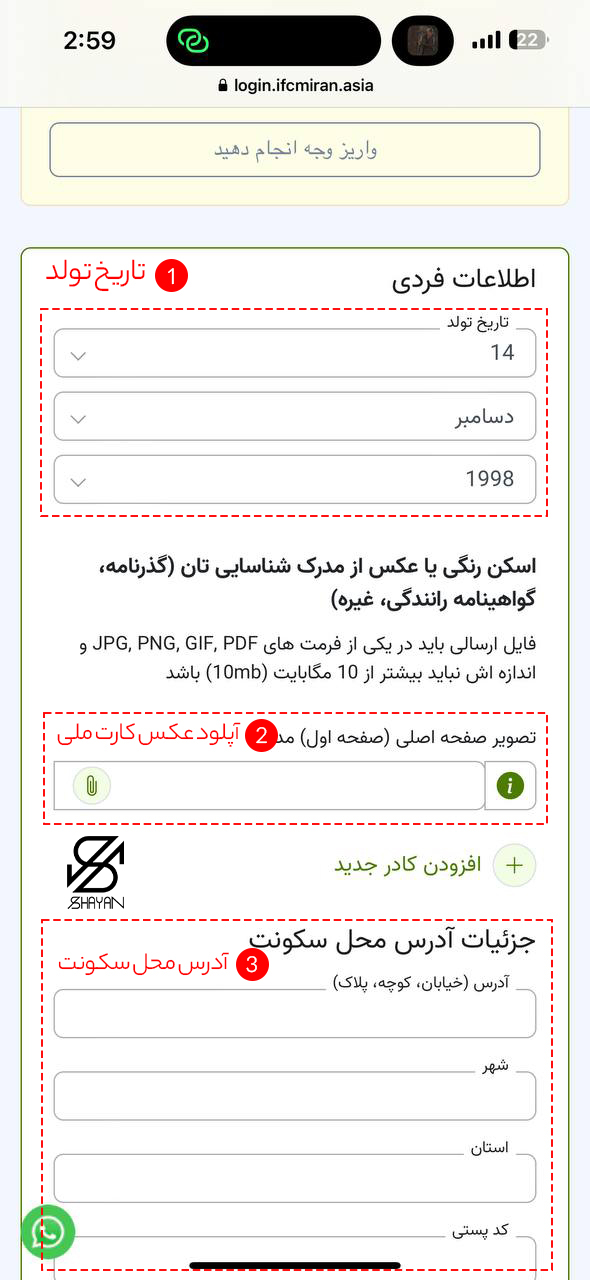 • اطلاعات فردی: نام، نام خانوادگی و تاریخ تولد خود را مطابق با مدرک شناسایی وارد کنید.