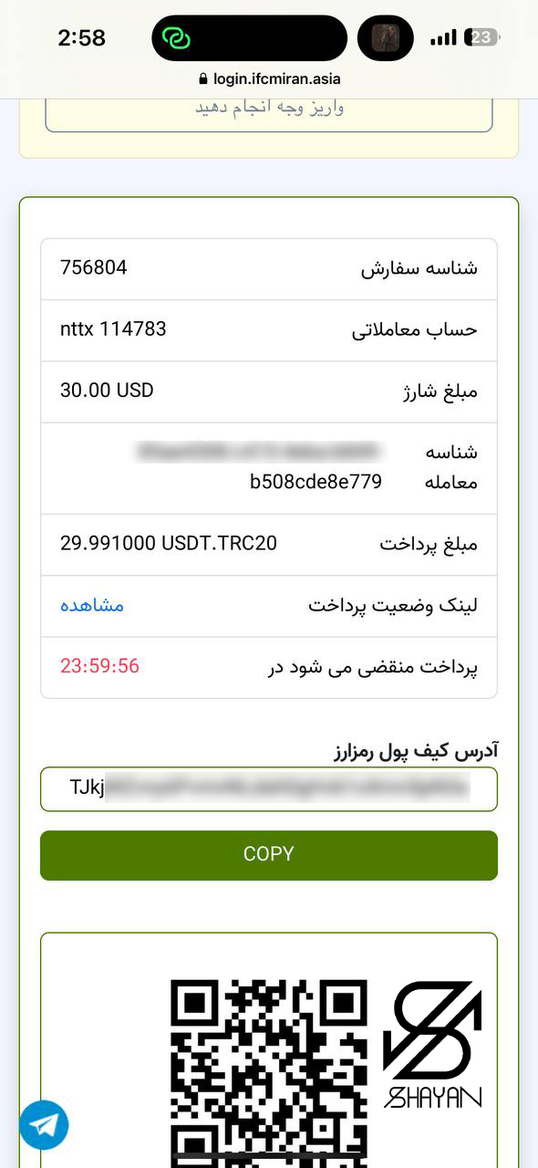 ۱. تکمیل واریز وجه