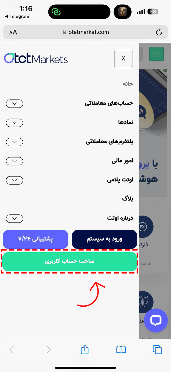 - مراجعه به وبسایت اوتت مارکتس و انتخاب گزینه ثبت نام