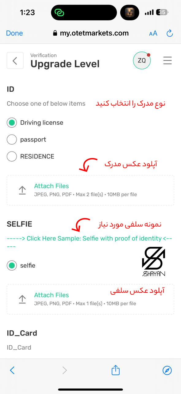 - ارسال اسکن کارت شناسایی یا گذرنامه برای تایید هویت