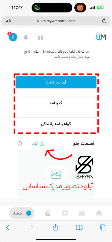 ۱۱. مدرکی که میخواهید آپلود کنید را انتخاب کنید.