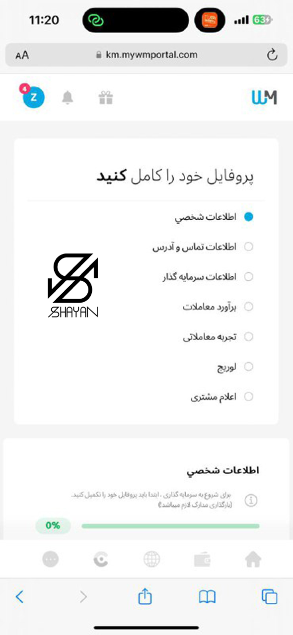 ۲. با وارد کردن اطلاعات خواسته شده پروفایل خود را کامل کنید.