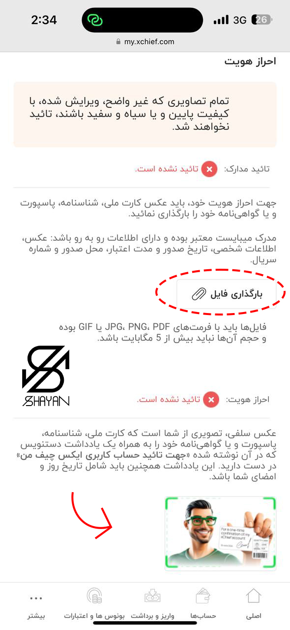 ۳. در این قسمت باید فایل مدارک را بارگذاری کنید.