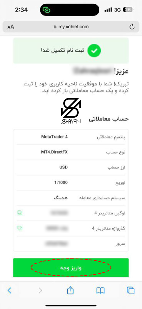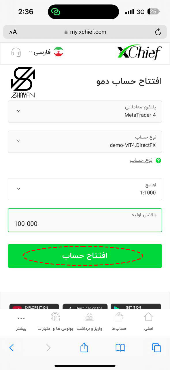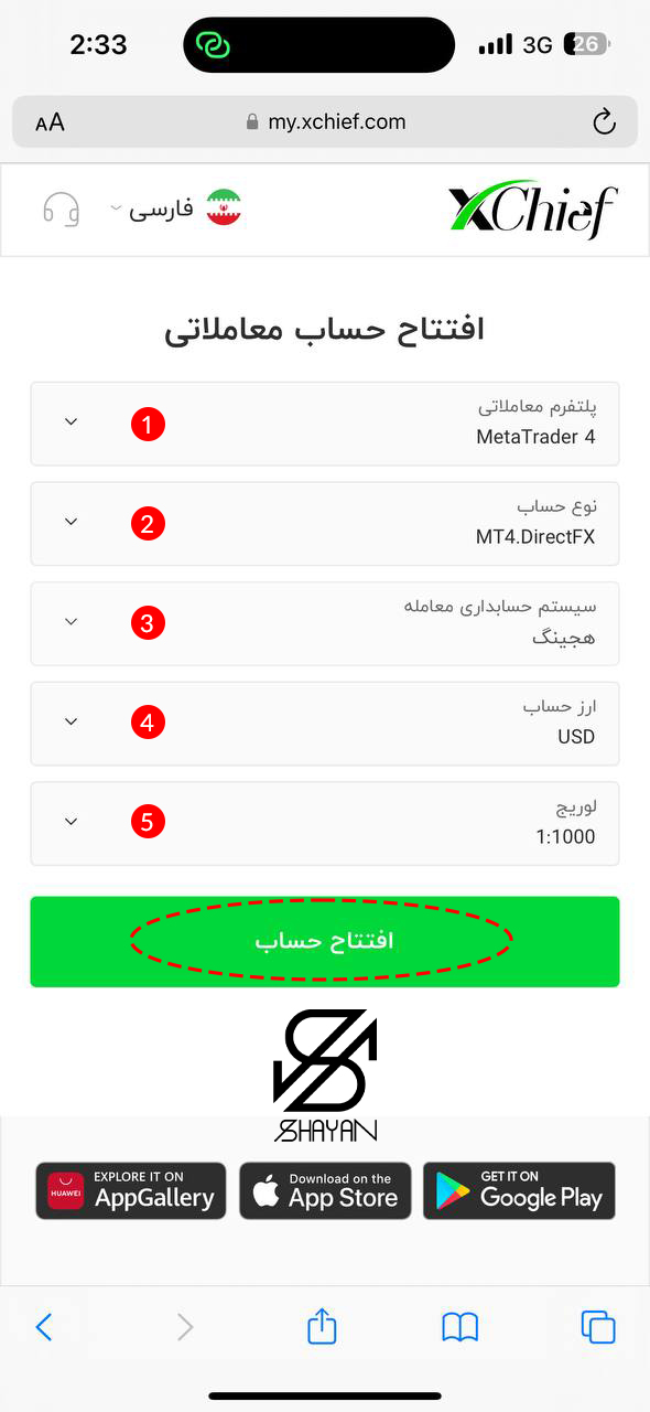 پس از وارد کردن اطلاعات، گزینه افتتاح حساب را بزنید.