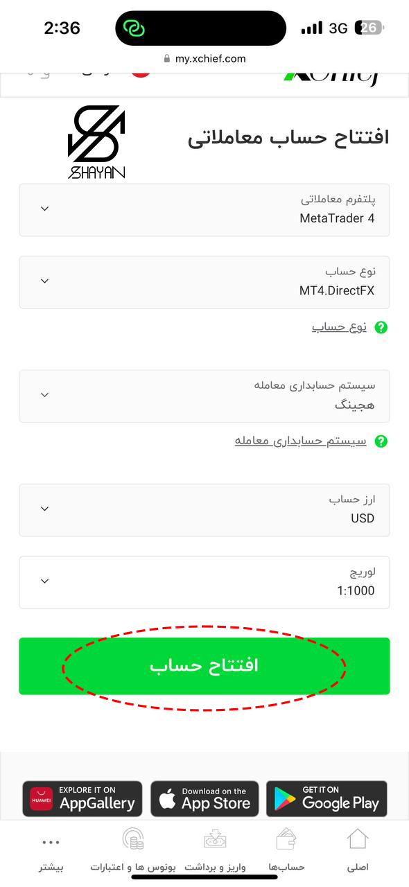 ۳. پس از تکمیل اطلاعات، گزینه افتتاح حساب را بزنید.