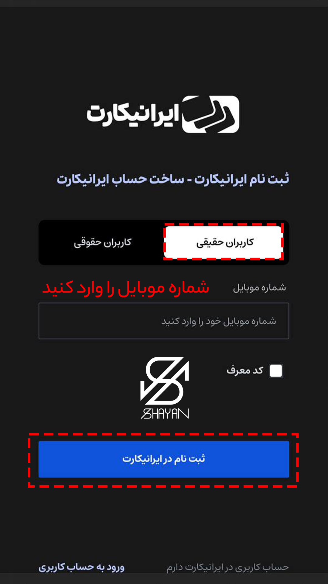 - گام اول دانلود اپلیکیشن ایرانیکارت: برای این کار به سایت رسمی ایرانیکارت مراجعه کرده و آخرین نسخه اپلیکیشن را برای دستگاه اندروید یا iOS خود دانلود نمایید. پس از دانلود نیز نوبت به نصب و اجرای برنامه میرسد؛