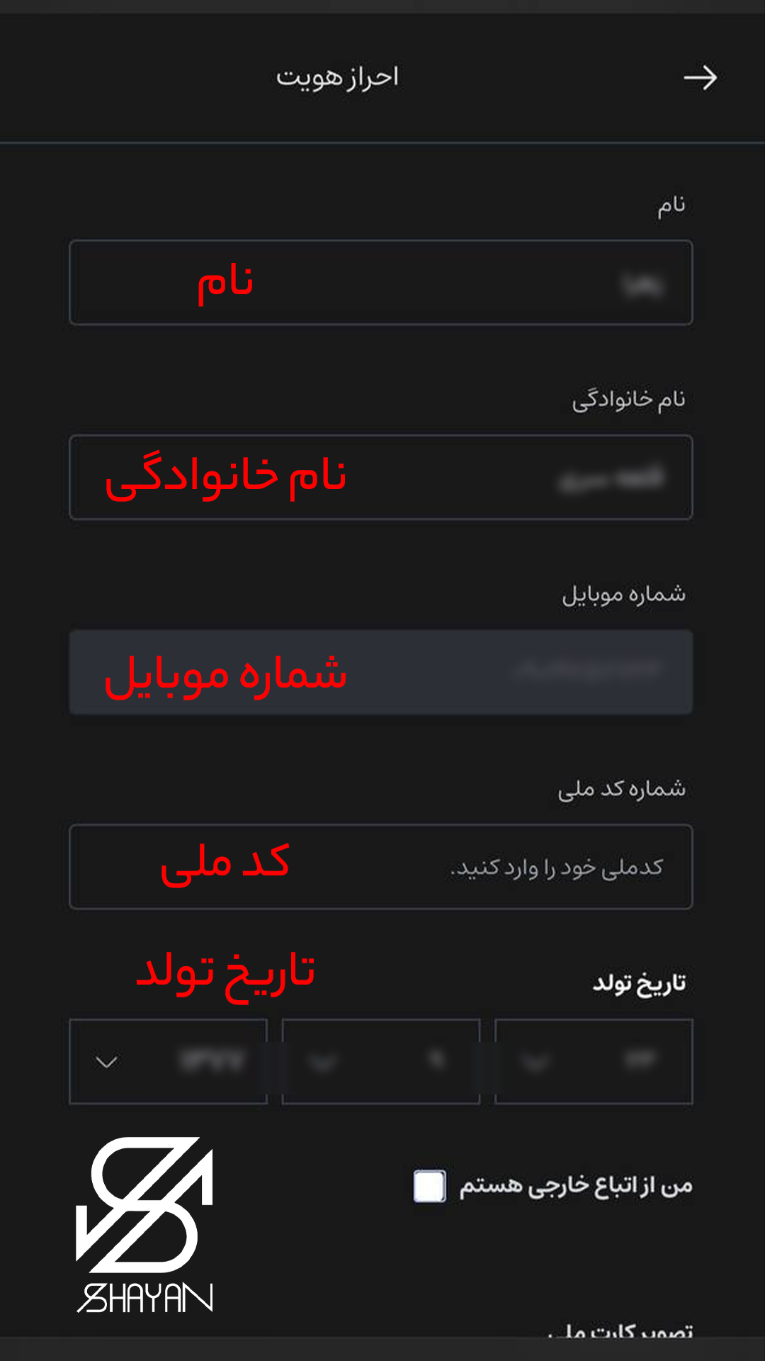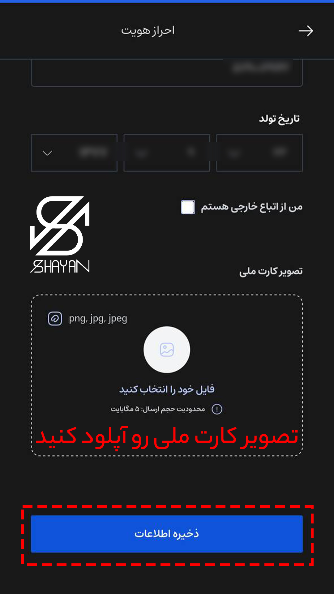 - گام سوم تکمیل احراز هویت (KYC): برای این مرحله در بخش پروفایل، گزینه «تکمیل احراز هویت» را کلیک کنید و بعد از آن از کارت ملی یا گذرنامه خود عکس واضح بگیرید. حالا باید یک سلفی با نگه داشتن کارت ملی تهیه کنید. در این مرحله بسیار مهم است مه اطلاعات شخصی را دقیقاً مطابق مدارک وارد نمایید؛