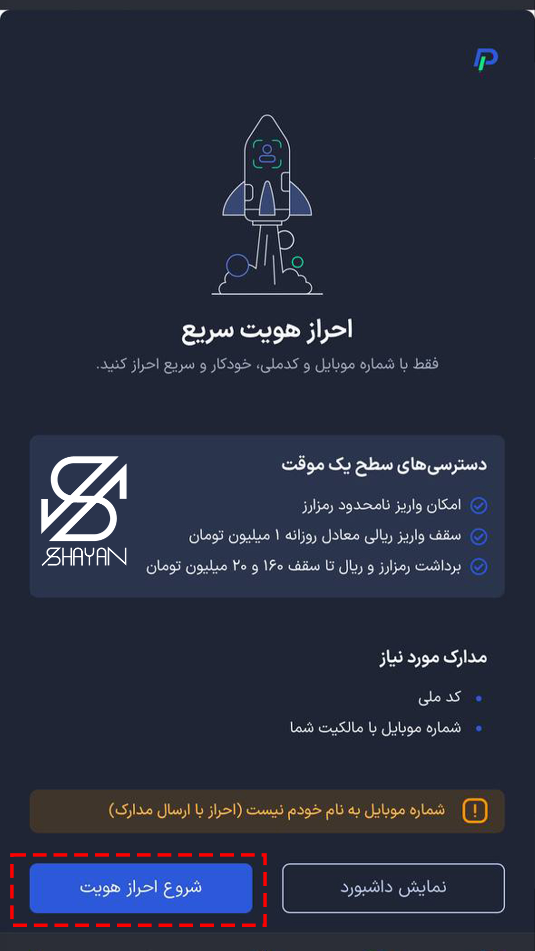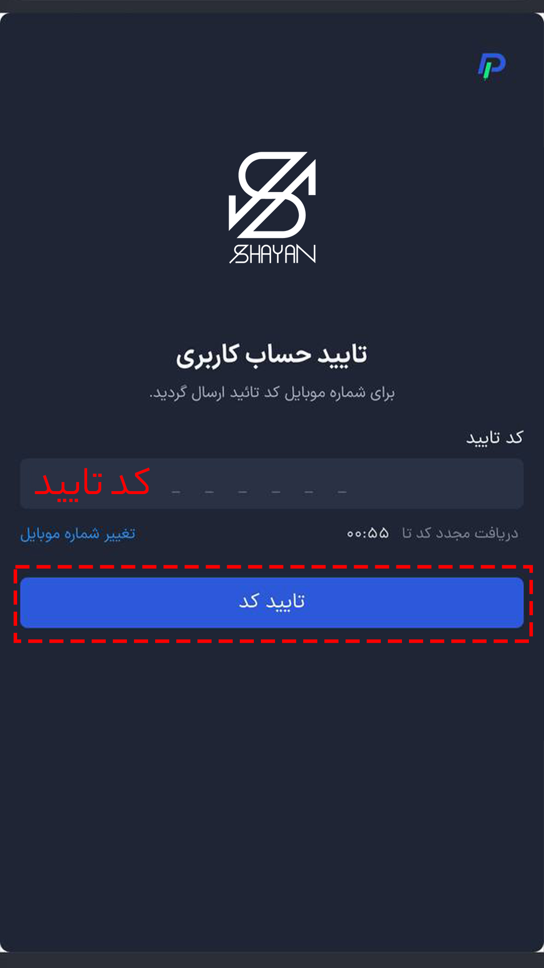 - تایید هویت از طریق کد 4 رقمی ارسالی به شماره شما انجام میگیرد.
