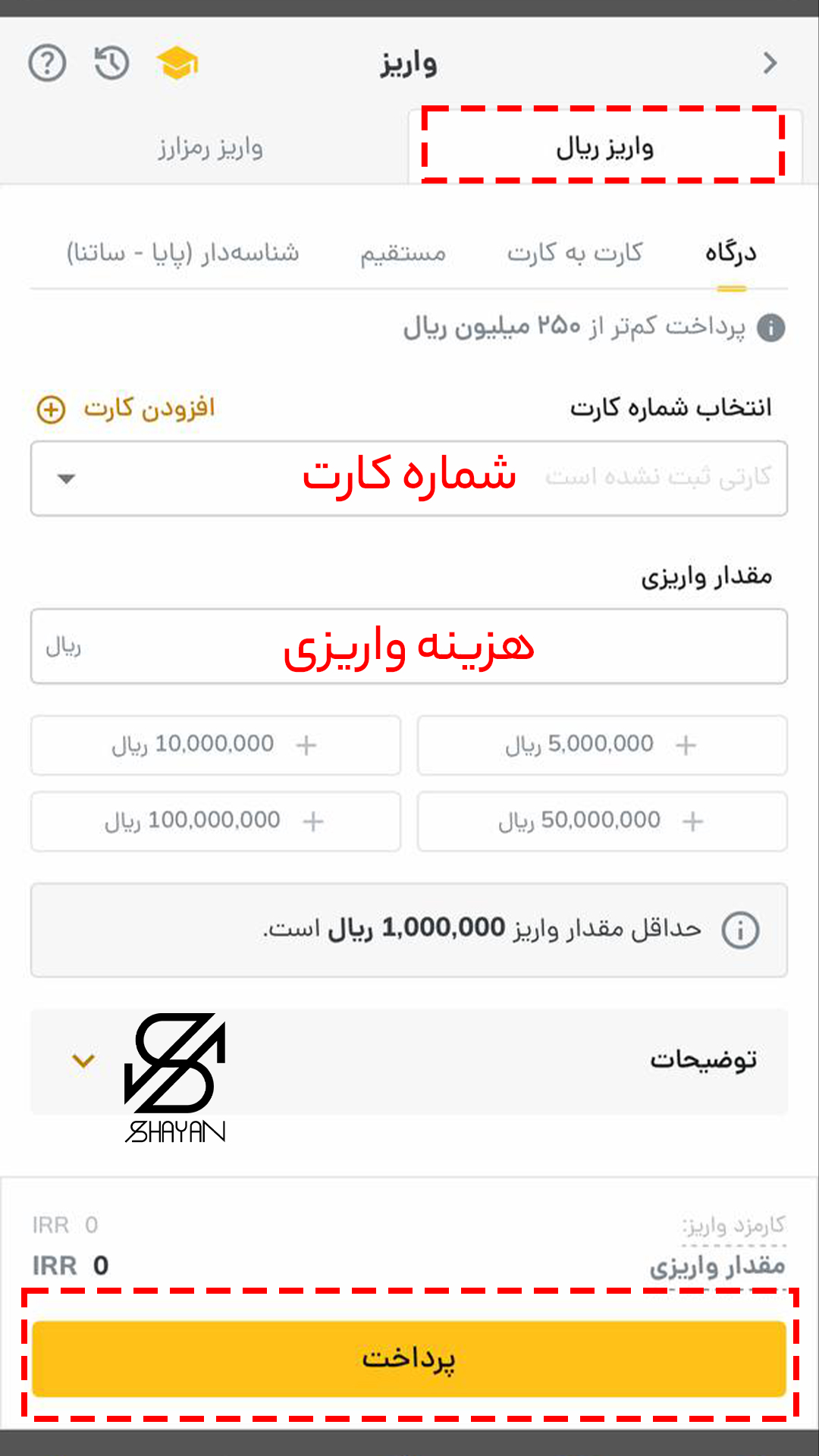 پس از پایان ثبت نام می‌توانید وارد بخش واریز شوید.