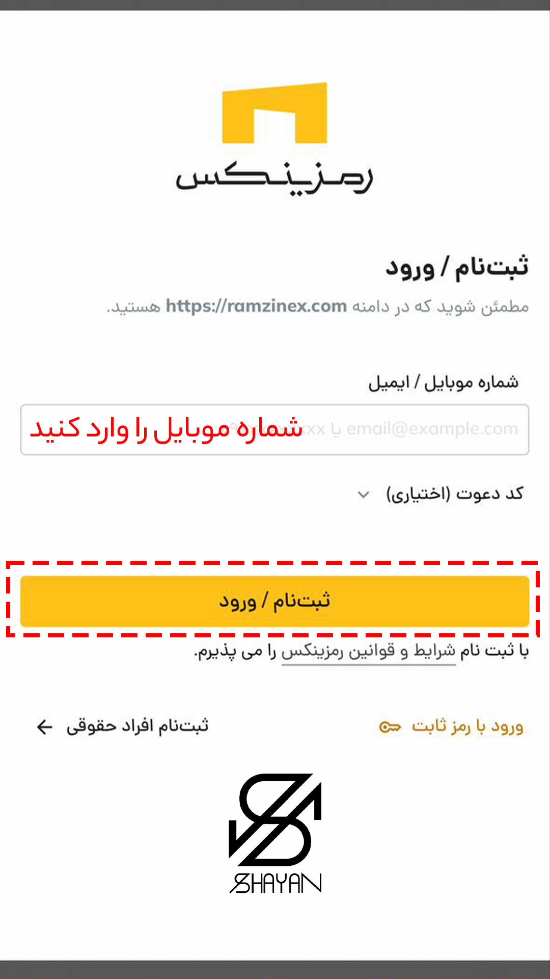 ۲. در این قسمت می‌توانید شماره موبایل یا ایمیل خود را وارد کنید.