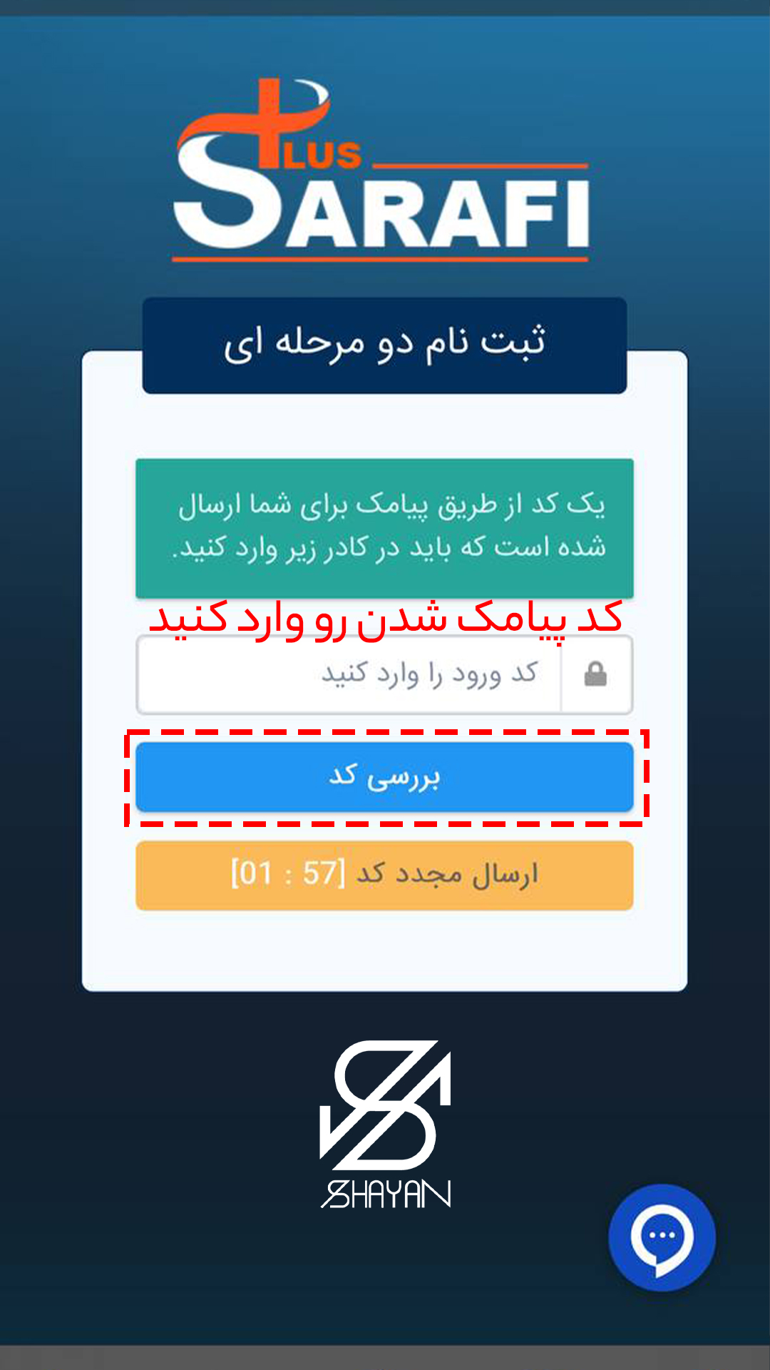 - کد دریافتی را در کادر مشخص شده وارد کنید. در صورت عدم دریافت کد، میتوانید پس از 2 دقیقه گزینه «ارسال مجدد» را انتخاب نمایید.