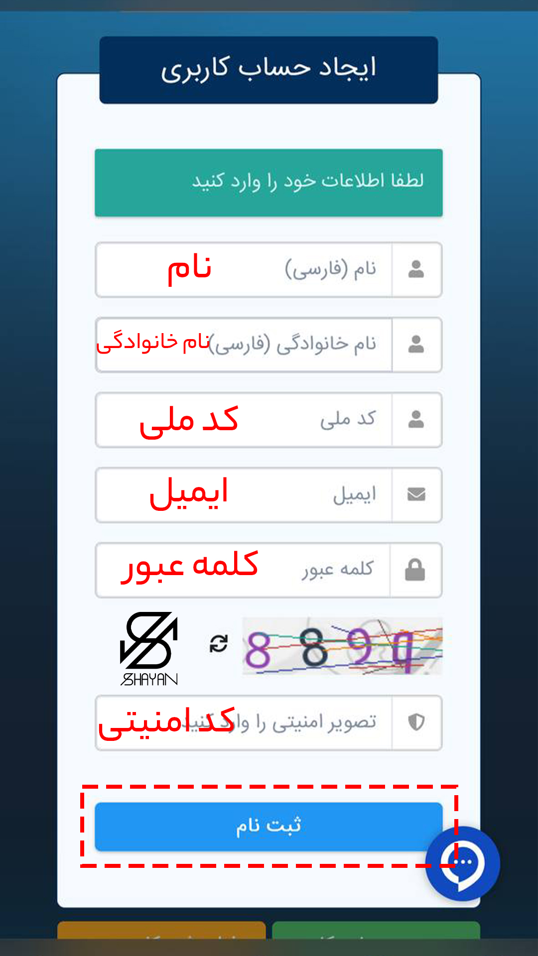 - نام و نام خانوادگی مطابق کارت ملی؛