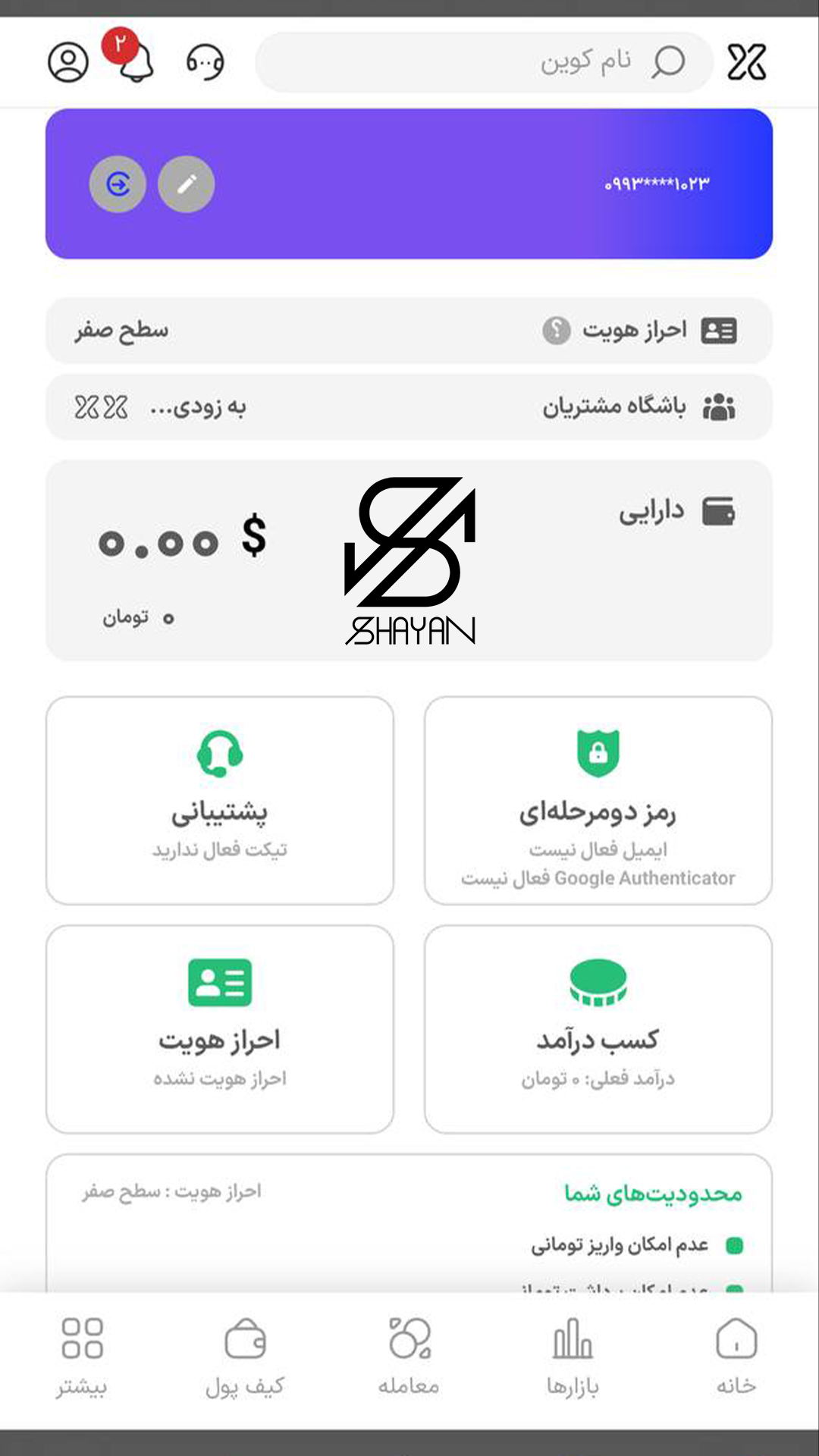 - پس از تأیید محدودیتهای تراکنشی بر اساس سطح کاربری شما اعمال خواهند شد و سطوح کاربری مختلف، محدوده واریز/برداشت متفاوتی دارند.