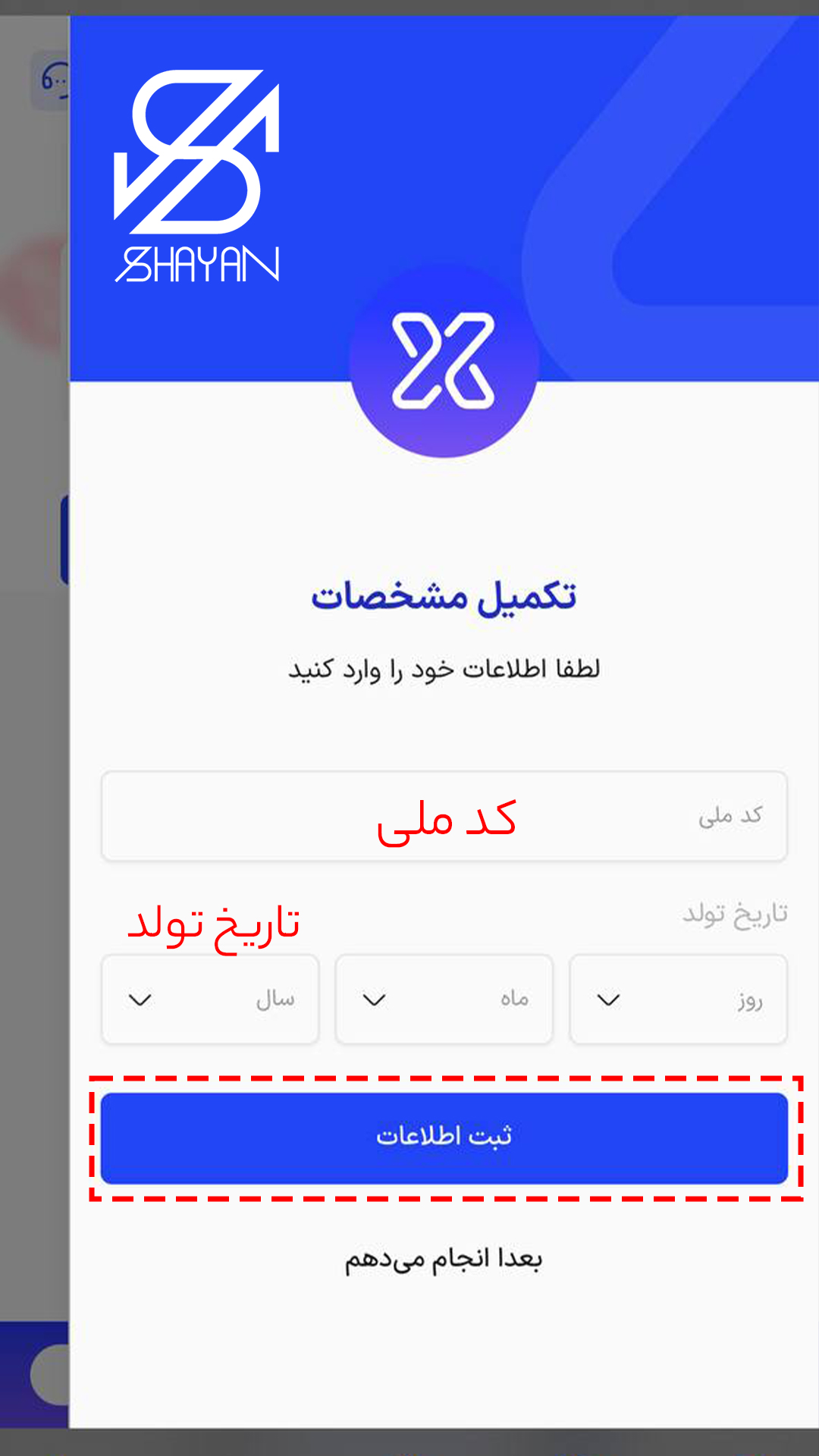 - مرحله چهارم مختص به تکمیل اطلاعات شناسایی شما است.