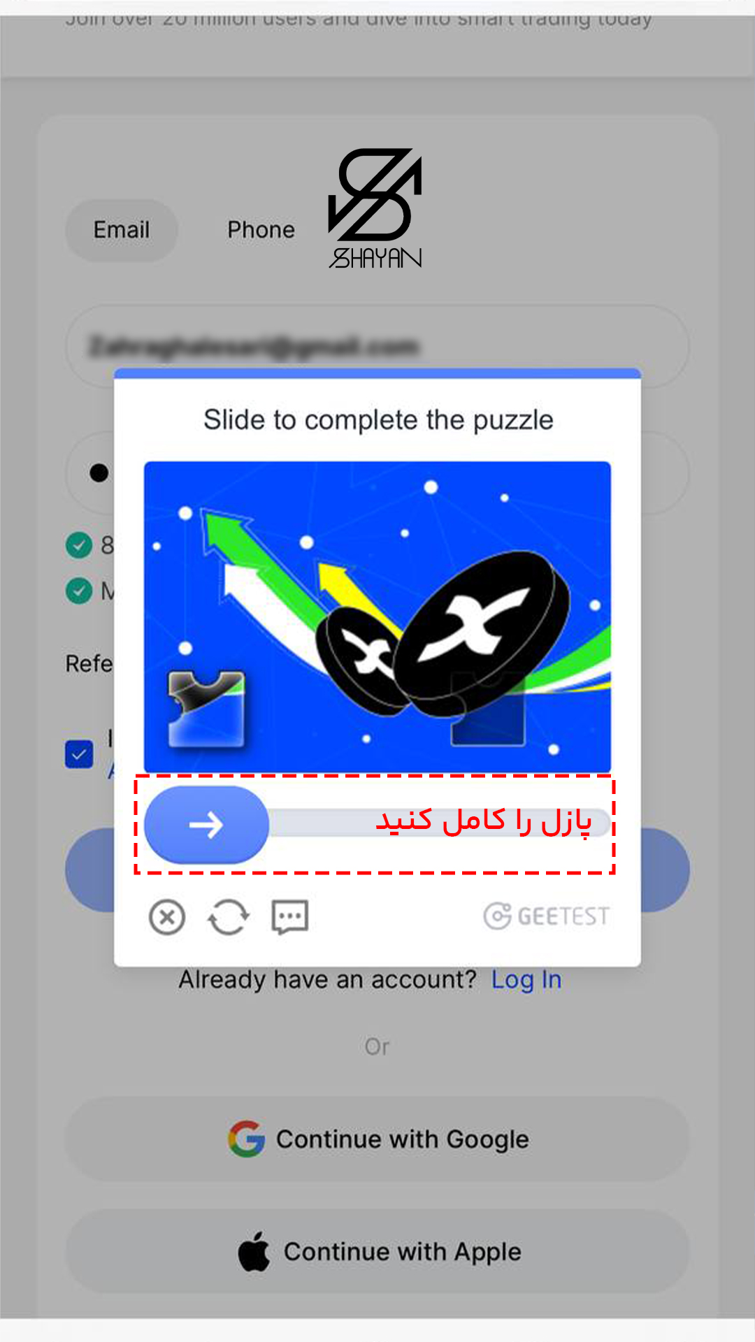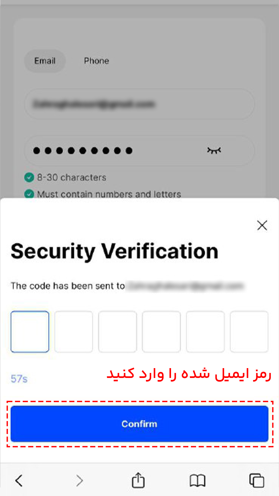 - یک کد تأیید به ایمیل شما ارسال خواهد شد که باید آن را در کادر مربوطه وارد نمایید؛
