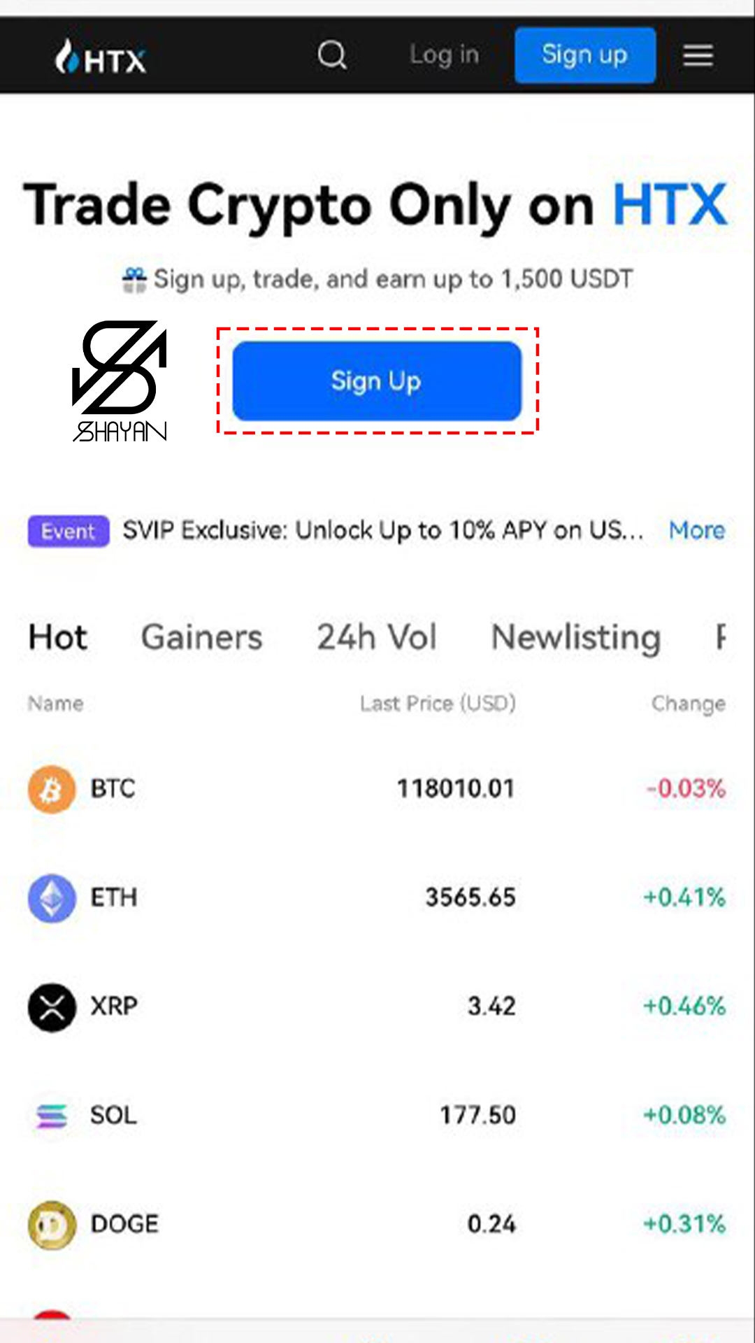 - به وبسایت رسمی Huobi در آدرس com مراجعه کنید؛